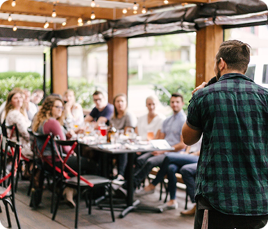Разработаем сценарий мероприятия с учётом хронометража, специфики площадки и состава гостей. Включая тексты для ведущего и тайминг выступлений.