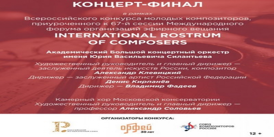 Финишный концерт Всероссийского конкурса молодых композиторов, подогнанного к 67-й сессии Международного форума организаций лёгкого радиовещания International Rostrum of Composers (IRC), прекратится 23 сентября в РАМ им. Гнесиных.