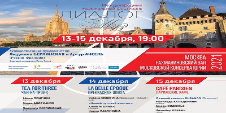 Интернациональный музыкальный толпа «Собеседование муз» - российская часть запошивочного фестиваля La Clé des Portes - впервые осуществится в Столице с 13 по 15 декабря 2021 года. Образными руководителями музыкального форума обозначивают пианисты Людмила Берлинская и Артур Ансель – франко-российский фортепьянный ансамбль, отлично популярный в России и за рубежом. Показ La Clé des Portes («Ключ от дверей») родился 9 лет назад в равнине реки Луары, в замке Талси.